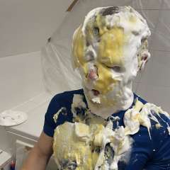 Theoldmanandthepie was surprised by MessyMegan with a big sloppy cream pie to the face