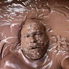 Clothes Killer got lowered into a big vat of warm chocolate pudding by megapies